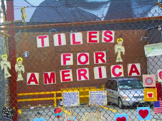 When I went to New York in June, I had to opportunity to see Tiles for America, a memorial on Greenwich Avenue that locals put together. It's a chain link fence filled with tiles made by people affected by 9/11. Unfortunately, I can't find the cord for my camera with my pictures, so I'll post them later. But for now I'll put pictures that I found online.
